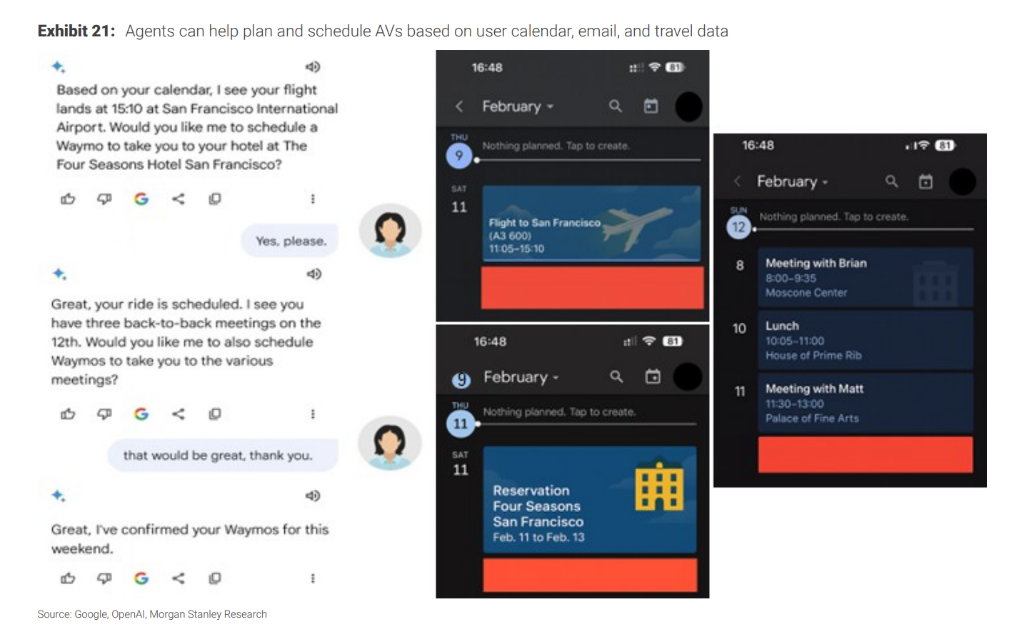 未来的AI代理可以访问用户的日历、邮件和旅行计划,自动、无缝地调度自动驾驶车辆。