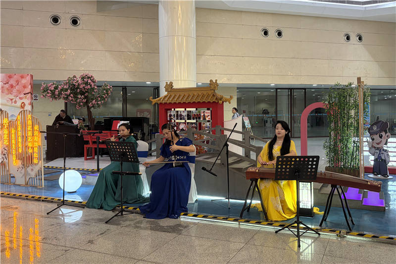 活动现场,津湾广场站化身沉浸式国风文化体验馆。“琴韵棠前”音乐文化岛上,公司文艺骨干与天津青年宫国乐团联袂献艺,丝竹声声、京韵悠扬,让繁忙的通勤旅途邂逅传统艺术之美。海棠主题彩绘、汉服体验、古韵留影区吸引大量乘客驻足参与,非遗手作区内,游客在匠人指导下绘制海棠团扇,于指尖技艺中感悟古典意趣。尤为引人注目的是精心打造的海棠主题文创矩阵,融合各站点特色与建筑美学的专属冰箱贴、实用美观的主题帆布袋等,将轨道交通元素转化为可收藏、可携带的城市文化符号。